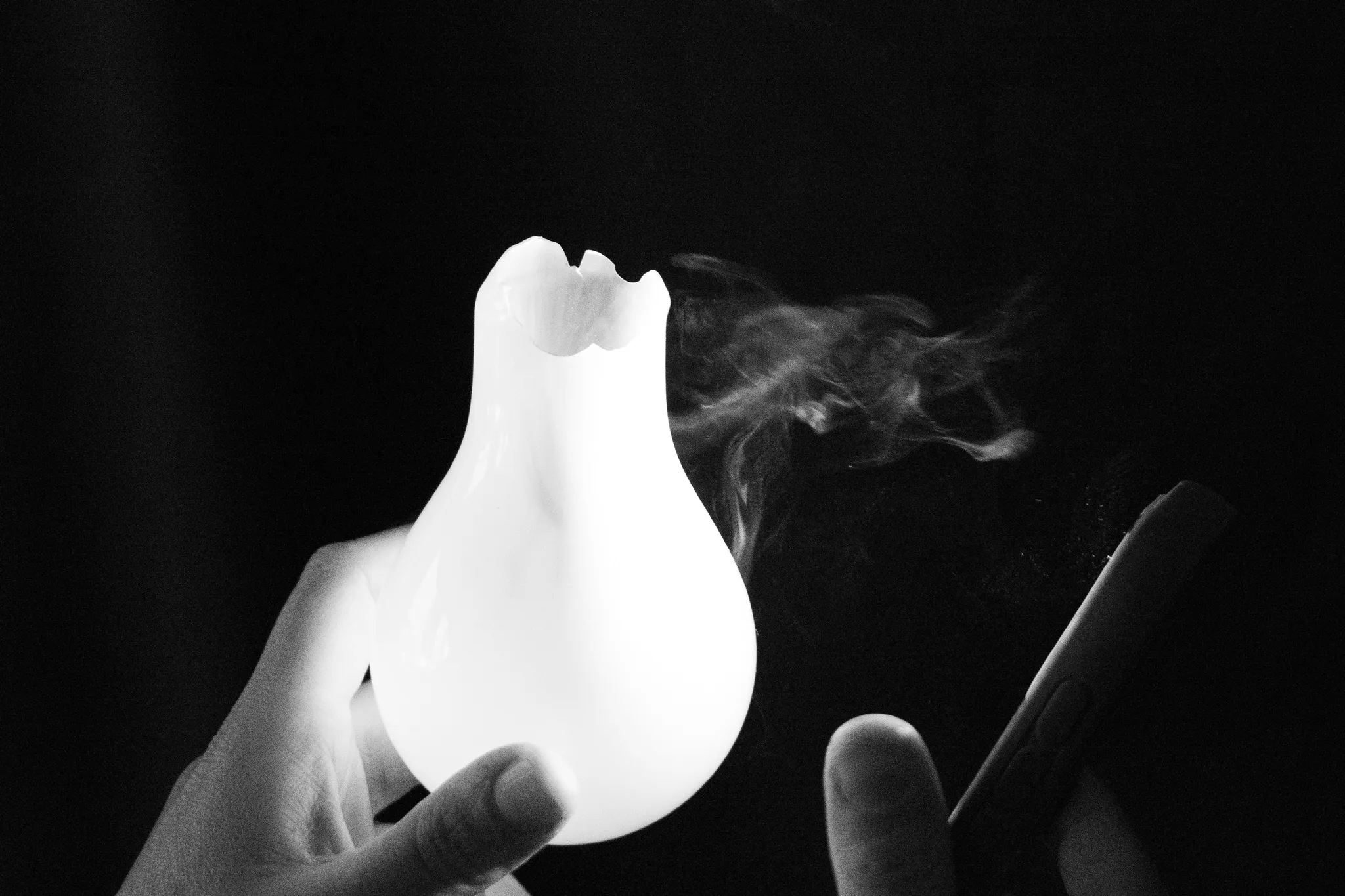 Not my hands, not my bulb, not even my phone. But when this hot light exploded, I ran over excitedly with my camera and got this overexposed garbage. Interesting though! The smoke is pretty awesome isn’t it?