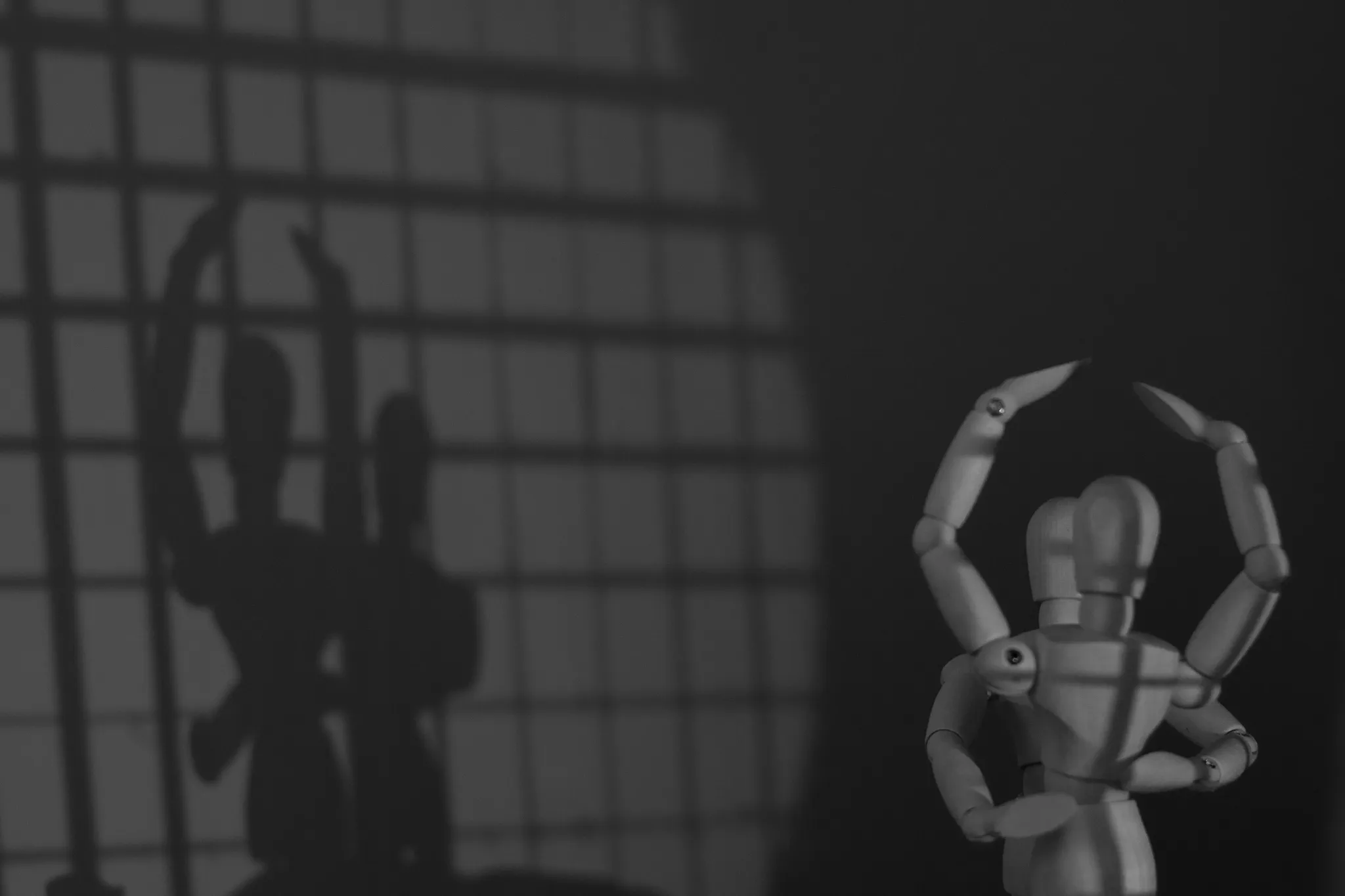 I am not a dancer if you couldn’t tell. Luckily, a dancer put these miniature crash dummies in this pose before I came over. I wanted to play with shadows here, especially overlaying the natural shadow left by the dancers, and another shadow left by a grid metal.